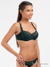 Великолепный бюстгальтер классической формы на косточках. Чашки из кружевной ткани, нижняя часть на поролоне с хлопковой подкладкой, спинка из тонкой эластичной шелковистой ткани. Несъемные бретели регулируются по длине, застежка на два крючка в три позиции.