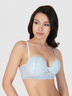 Бюстгальтер балконет с формованными чашками с эффектом "Push-Up". Очаровательная модель из фактурного кружева с цветочным рисунком нежно-голубого цвета. Отстегивающиеся бретели.