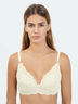 Бюстгальтер с поролоновой чашкой дублированной хлопком. Фактурное кружево, декорирующее чашки изделия, плавно переходит в удобные широкие бретели, идеально поддержит и придаст нужную форму счастливым обладательницам пышного бюста.