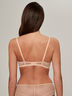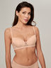 Женственный бюстгальтер с формованными чашками на косточках. Выполнен из гладкого, приятного на ощупь эластичного полотна и кружева с геометрическим узором. 2 варианта застежки бретелей: классический и крест-накрест. Боковые корсетные вставки обеспечивают оптимальную посадку. Изысканный и благородный образ.