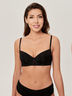 Женственный бюстгальтер с формованными чашками на косточках. Выполнен из гладкого, приятного на ощупь эластичного полотна и кружева с геометрическим узором. 2 варианта застежки бретелей: классический и крест-накрест. Боковые корсетные вставки обеспечивают оптимальную посадку. Изысканный и благородный образ.