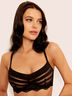Роковое белье Sensera для нетомного вечера. Манящий бюстгальтер выполнен из нежной сетки с геометрическим узором и завораживающего кружева. Мягкие прозрачные чашки не просто на косточках, а на стильном литом каркасе. Регулируемые бретели, боковые корсетные вставки и застежка на 2 крючка создают комфортную посадку и поддержку. Без push up.