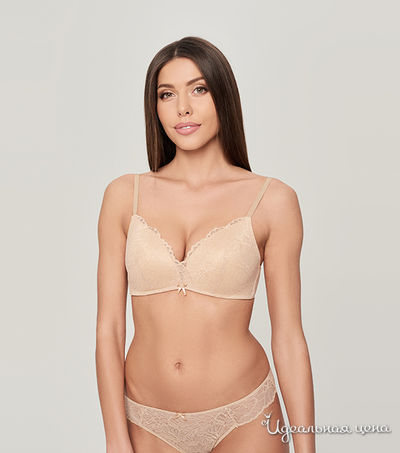 Бежевый бюстгальтер Orchid из кружева с формованной треугольной чашкой без каркасов super push-up во всех размерах. Регулируемые бретели можно застёгивать двумя способами: классическим и крест накрест на спинке. Декорирован бантиком спереди.