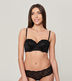 Бюстгальтер Orchid чёрного цвета из кружева с формованной чашкой бандо с эффектом push-up. Съёмные регулируемые бретели можно застёгивать двумя способами: классическим и крест накрест на спинке. Декорирован бантиком спереди.