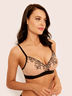 Белье Sensera достойно императрицы. Утонченный вкус, стиль и роскошь в одном комплекте. Бюстгальтер выполнен из нежной сетки телесного цвета. Изящная черная вышивка распускается тонким узором по краю декольте. Формованные треугольные чашки без косточек дополнены push up во всех размерах, создавая ту самую завораживающую ложбинку в декольте. Регулируемые бретели, боковые корсетные вставки широкая лента под грудью и застежка на 3 крючка создают оптимальную поддержку.