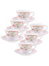 Чайный набор на 6 персон изготовлен из качественного костяного фарфора и декорирован нежным рисунком с изображением цветов. Элегантный чайный набор не только украсит сервировку стола, но и поднимет настроение и превратит процесс чаепития в одно удовольствие. Набор состоит из 12 предметов: 6-ти чашек и 6-ти блюдец, упакованных в круглую подарочную коробку. Чашки имеют удобные, изящные ручки. Изделия легко и просто мыть. Чайный набор прекрасно подойдет в качестве подарка для родных и друзей на любой праздник! Подходит для мытья в посудомоечной машине.