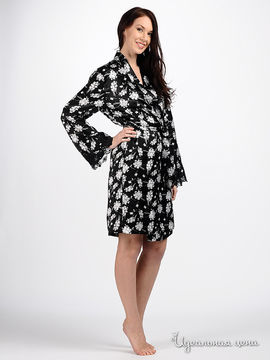 Халат Charoi "FIORE" женский, цвет черный / белый