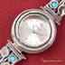 Модель с круглым циферблатом. Способ отображения времени - аналоговый. Арабские цифры. Есть секундная стрелка. Ремешок украшен опалами.