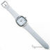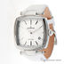 Корпус выполен из нержавеющей стали с вставками из цирконов. Цифры отсутствуют. Заводной механизм расположен справа. Циферблат с полосками дополнен надписью в виде логотипа бренда. Браслет кожаный. Водонепроницаемая модель WR50 (5 атм).
