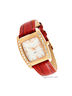Циферблат: белый, натуральный морской перламутр, арабские цифры, индексы на цифрах. Корпус: нержавеющая сталь, позолота 3 мкр красным золотом, кристаллы в ювелирном креплении