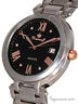 Циферблат: черный, фигурная чеканка, римские позолоченные цифры и стрелки
