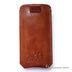 Выполнен из натуральной кожи украшен оригинальным тиснением, снабжен движущимся хлястиком для более удобного вынимания телефона из футляра.