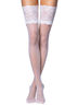 Тонкие эластичные чулки 20 ден с широкой кружевной самоподдерживающейся резинкой.