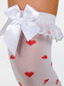 Чулочки с рисунком в виде сердечек, на кружевной резинке с атласным бантиком.