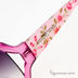 Элегантные очки в оправе из полупрозрачного пластика с перламутровым напылением на внутренней стороне рамки. Розовые заушники декорированы принтом "цветы" и металлической накладкой с логотипом марки. Градиентные поликарбонатные линзы.