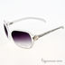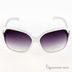 Стильные солнцезащитные очки в крупной пластиковой оправе белого цвета. Тонкие черно-белые заушники декорированы металлической круглой вставкой-логотипом у основания. Поликарбонатные серые линзы с градиентом.