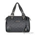 Небольшая сумка с одним основным отделом на молнии, содержашем карманы разного типа. Подкладка - черный нейлон, фурнитура - хром. Жаккардовая ткань с фирменным логотипом марки. Ручки жесткие средней длины, жесткое дно, форма. Контрастная бежевая строчка и элементы из черной искусственной кожи. Линия "Di Moda".