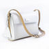 Маленькая сумочка классической формы, по бокам декоративные ремешки. Одно отделение под клапаном на кнопке, разделенное на две части карманом на молнии. Подкладка - синий нейлон, фурнитура - серебро. Длинный регулируемый плечевой ремень.