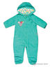 Новый демисезонный комбинезон с капюшоном и закрытыми ножками от Olive and Moss с наполнителем из полиэстера, верхний слой из вельвета в мелкий рубчик, нижний слой из мягкого хлопка, декорирован аппликаций, косая застежка с пуговицами на груди и застежка молния по всей длине от подмышки до закрытой части ножки, рукава на резинке.