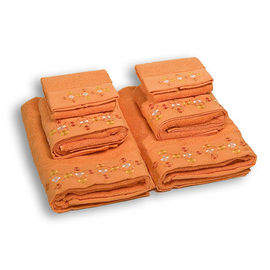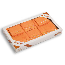 Комплект махровых полотенец из шести предметов хлопок оранжевый