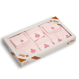Комплект махровых полотенец из шести предметов хлопок розовый
