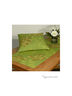 На зеленом полотне вышитые белой и светло-коричневой нитью ветви.