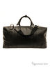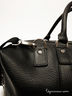 Дорожная сумка. Одно большое отделение на молнии. Внутри отделения карман на молнии. С лицевой стороны незакрывающийся карман. Декоративные элементы в виде коробинов по бокам и вставок из кожи со всех сторон. Подкладка - черный нейлон, фурнитура - матовое серебро. Короткие, жесткие ручки с возможностью соединения. Съемный, длинный, регулируемый плечевой ремень. Дно на ножках. Размер: 26(42)-50-25см