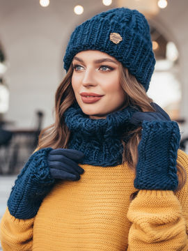 Комплект: шапка, хомут, перчатки Dressa, цвет темно-синий