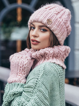 Комплект: шапка, хомут, перчатки Dressa, цвет светло-розовый
