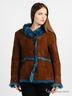 Эффектная дубленка, слегка приталенного силуэта выполнена из натуральной овчины мягчайшей выделки. Отложной воротник с мехом, застежка на пуговицы, длинный прямой рукав, два кармана в рельефных швах. Добавьте в свой гардероб ярких красок!