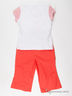 Замечательный комплект состоит из двух предметов: футболка и капри. Футболка с короткими рукавами и округлым вырезом горловины. Спереди модель декорирована принтом. Капри свободного кроя выполнены в яркой расцветке. Отличный вариант для создания повседневного образа.