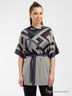Замечательная туника с короткими широкими рукавами и воротником "хомут". Модель декорирована контрастным рисунком и дополнена пояском на талии. Отличный вариант для повседневного использования.