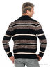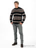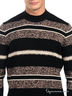 Стильный мужской джемпер с округлым вырезом горловины и длинными рукавами. Полочка украшена контрастным рисунком, манжеты рукавов, ворот и низ изделия оформлены в рубчик.