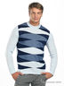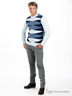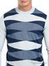 Стильный мужской джемпер с округлым вырезом горловины и длинными рукавами. Полочка украшена контрастным рисунком, ворот изделия оформлен в рубчик.
