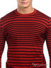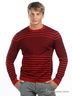 Стильный мужской джемпер с округлым вырезом горловины и длинными рукавами. Изделие украшено контрастными полосками черного цвета.