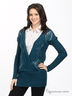 Детали: v-образный глубокий вырез горловины с запахом, полочка декорирована ажурной вязкой