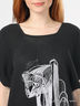 Теплый трикотажный джемпер свободного покроя. Широкая круглая горловина. Короткие рукава реглан. Низ изделия посажен на трикотажную резинку. На полочке абстрактный рисунок белого цвета.