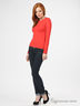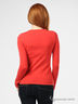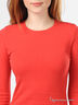 Трикотажный джемпер ярко-красного цвета. Круглая горловина. Длинные рукава. Фактура материала на рукавах и талии придает модели изюминку.