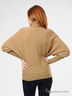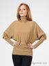 Теплый трикотажный свитер кроя "летучая мышь". Воротник хомут выполнен из трикотажа в рубчик. Длинные рукава реглан с широкими манжетами. Низ изделия посажен на трикотажную резинку.
