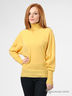 Теплый трикотажный свитер кроя "летучая мышь". Воротник хомут выполнен из трикотажа в рубчик. Длинные рукава реглан с широкими манжетами. Низ изделия посажен на трикотажную резинку.