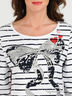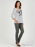 Детали: длинный прямой рукав, полочка декорирована набивным рисунком, блестками и стразами