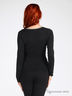 Трикотажный женский джемпер с длинными рукавами и V-образным вырезом. Изделие украшено пайетками и нашивками из плотного фактурного материала в виде цветов.