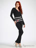 Трикотажный женский джемпер с длинными рукавами и V-образным вырезом. Изделие украшено пайетками и нашивками из плотного фактурного материала в виде цветов.