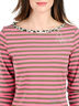 Детали: округлый вырез горловины дополнен трикотажной лентой, укороченный рукав, полочка декорирована стразами