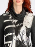 Новомодный женский джемпер, из сжатой трикотажной ткани. У изделия длинные рукава и воротник гольф. Джемпер украшен оригинальным принтом. Все это придаст ярких красок Вашему образу.