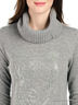 Детали: широкий ворот-гольф, длинный прямой рукав, полочка декорирована стразами