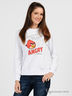 Модный джемпер из мягкого, приятного на ощупь хлопкового трикотажа средней плотности. Округлый вырез горловины. Длинные прямые рукава с широкими манжетами. Ворот, манжеты и низ изделия выполнены из рибаны. Перед декорирован стильным, ярким рисунком.