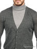 Детали: эффект двойки - водолазки и кардигана, ворот-стойка, застежка на пуговицы; ворот, манжеты и низ изделия - трикотажные резинки