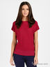 Детали: округлый вырез горловины, короткий рукав, низ изделия посажен на манжету