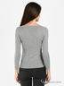 Детали: округлый вырез горловины, длинный рукав, низ изделия посажен на манжету